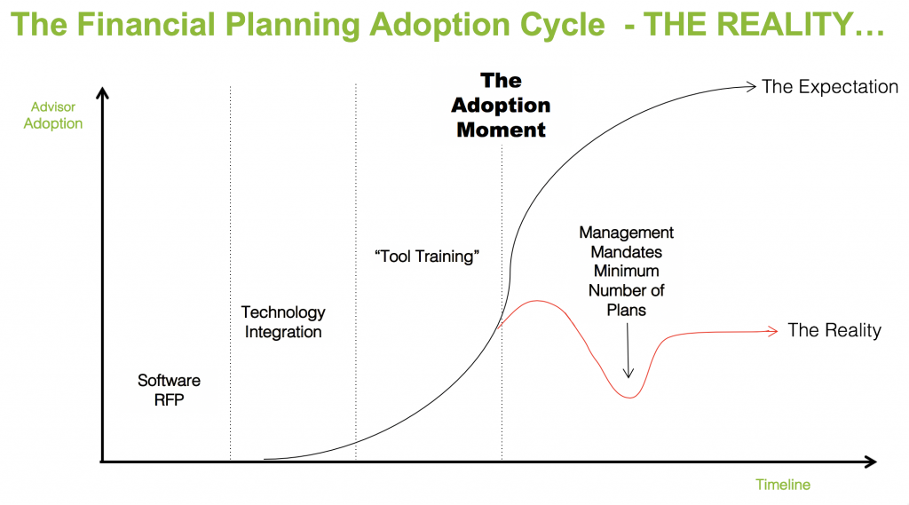 The primary mistake we see in such planning initiatives throughout the industry is that the launch of the initiative is focused on the wrong thing – the financial planning software.